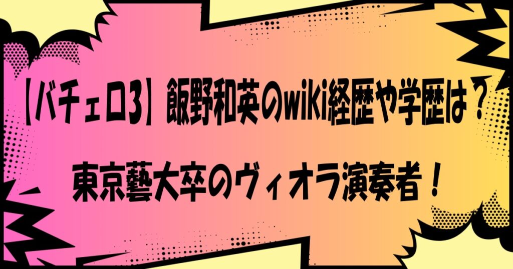 【バチェロ3】飯野和英の経歴や学歴を調査!東京藝大卒のヴィオラ演奏者?
