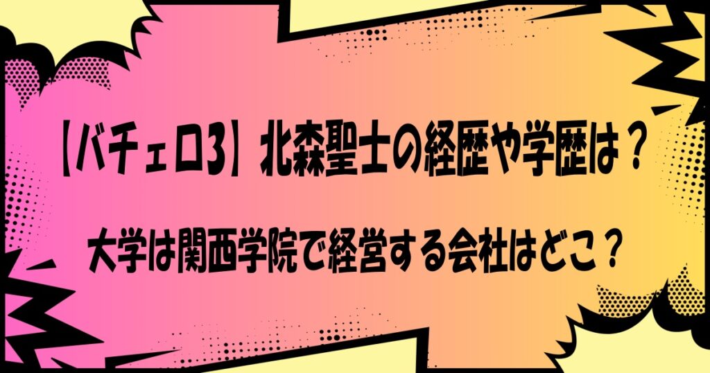 【バチェロ3】北森聖士の経歴や学歴は?大学は関西学院で経営する会社はどこ?