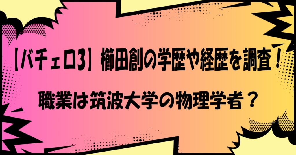 【バチェロ3】櫛田創の学歴や経歴を調査!職業は筑波大学の物理学者?