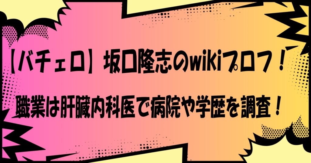 【バチェロ】坂口隆志のwikiプロフ!職業は肝臓内科医で病院や学歴を調査!