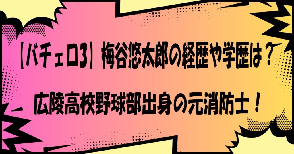 【バチェロ3】梅谷悠太郎の経歴や学歴は?広陵高校野球部出身の元消防士!