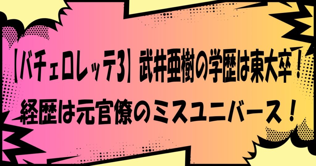【バチェロレッテ3】武井亜樹の学歴は東大卒!経歴は元官僚のミスユニバース!